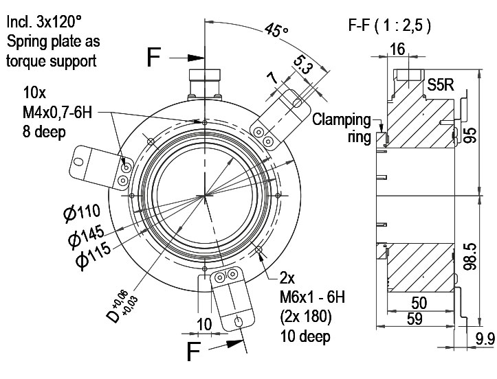 Albero: Ø 45, 48, 50, 55, 60, 65, 72 mm,