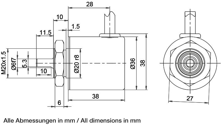 Albero pieno, flangia di avvitamento: Ø 36 mm