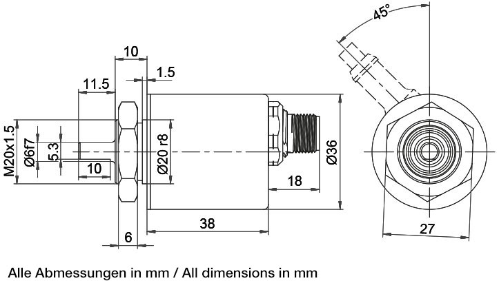 - Classe di protezione IP67, all'ingresso dell'albero IP65